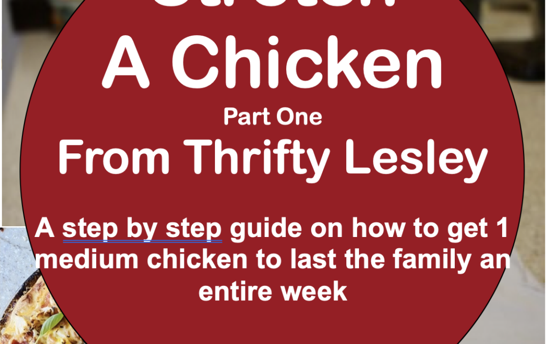 Front cover of an ebook on how to stretch a chicken to last a family of 4 a week.