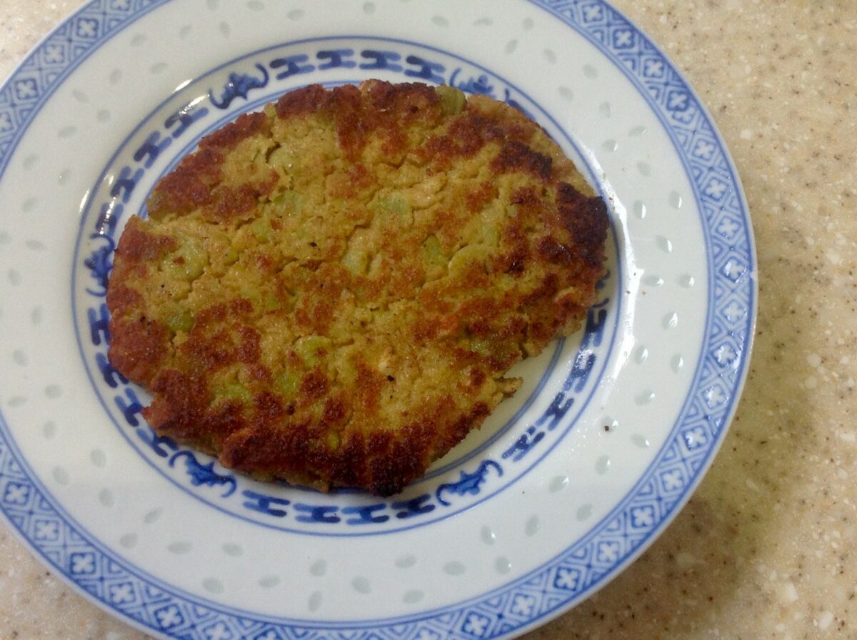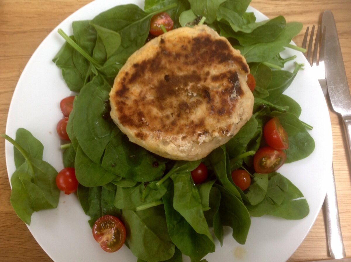 peaut oatcakes - on a plate with onion and peas