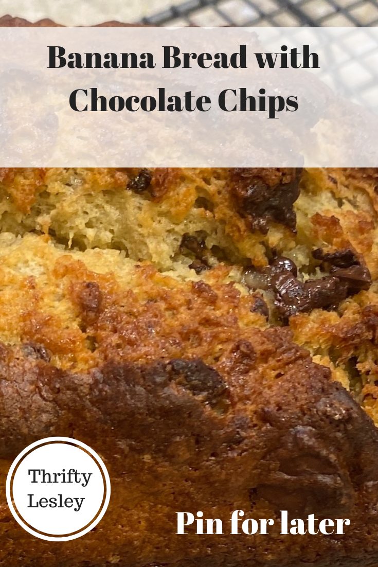 I usually use up soft bananas in smoothies, with an unpeeled apple and a splash of orange juice. But if I want cake, this recipe for a homemade banana bread is super quick to mix up and very tasty. The version in the picture below doesn’t have chocolate chips in.